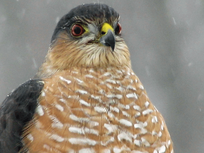 Female Sharp-shinned Hawks are about a third bigger and heavier than males. This is a typical pattern for many hawks and owls, but otherwise rare in the bird world.