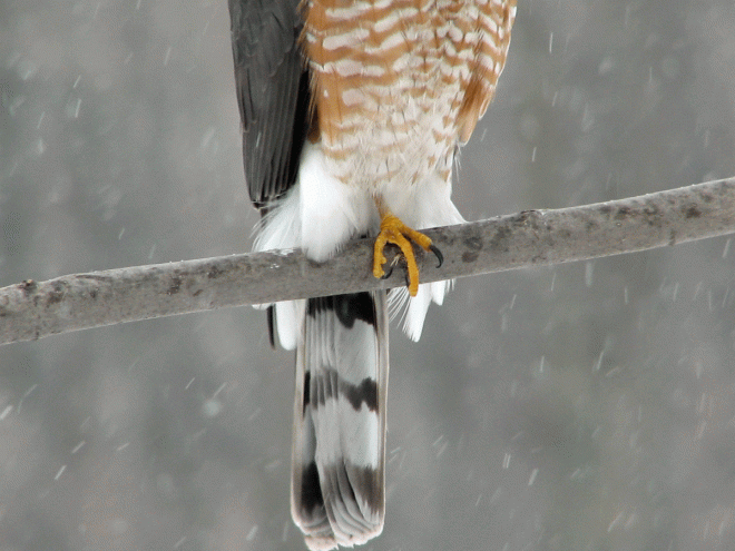 Rather like a cat’s claws, Sharp-shinned Hawks use their long toes and talons to impale and hold moving prey. They’ve even been known to reach into wire-mesh bird traps to grab prey with their toes.