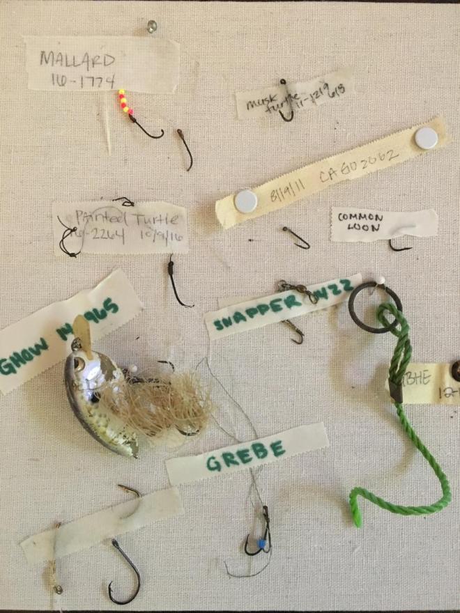 Example of fishing line, hooks etc removed from wild animals not including sea turtles