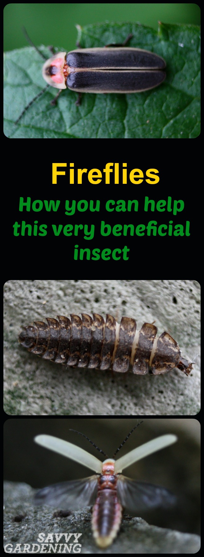 Avoid pesticide use, which can kill fireflies and their prey or degrade habitat