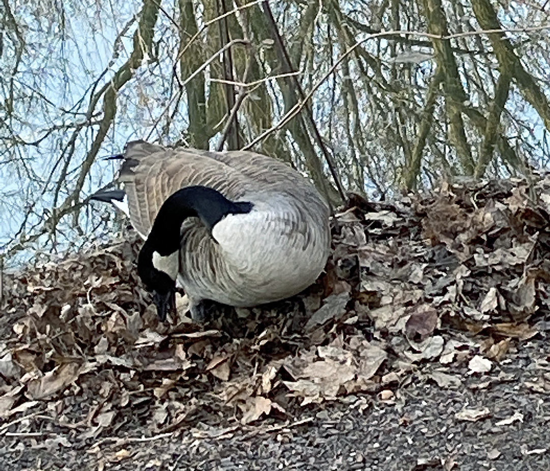 She will gather whatever is close to her and use it along with feathers pull out from her breast. Female geese return to where they hatched bringing the male even if it is away from water or near people.